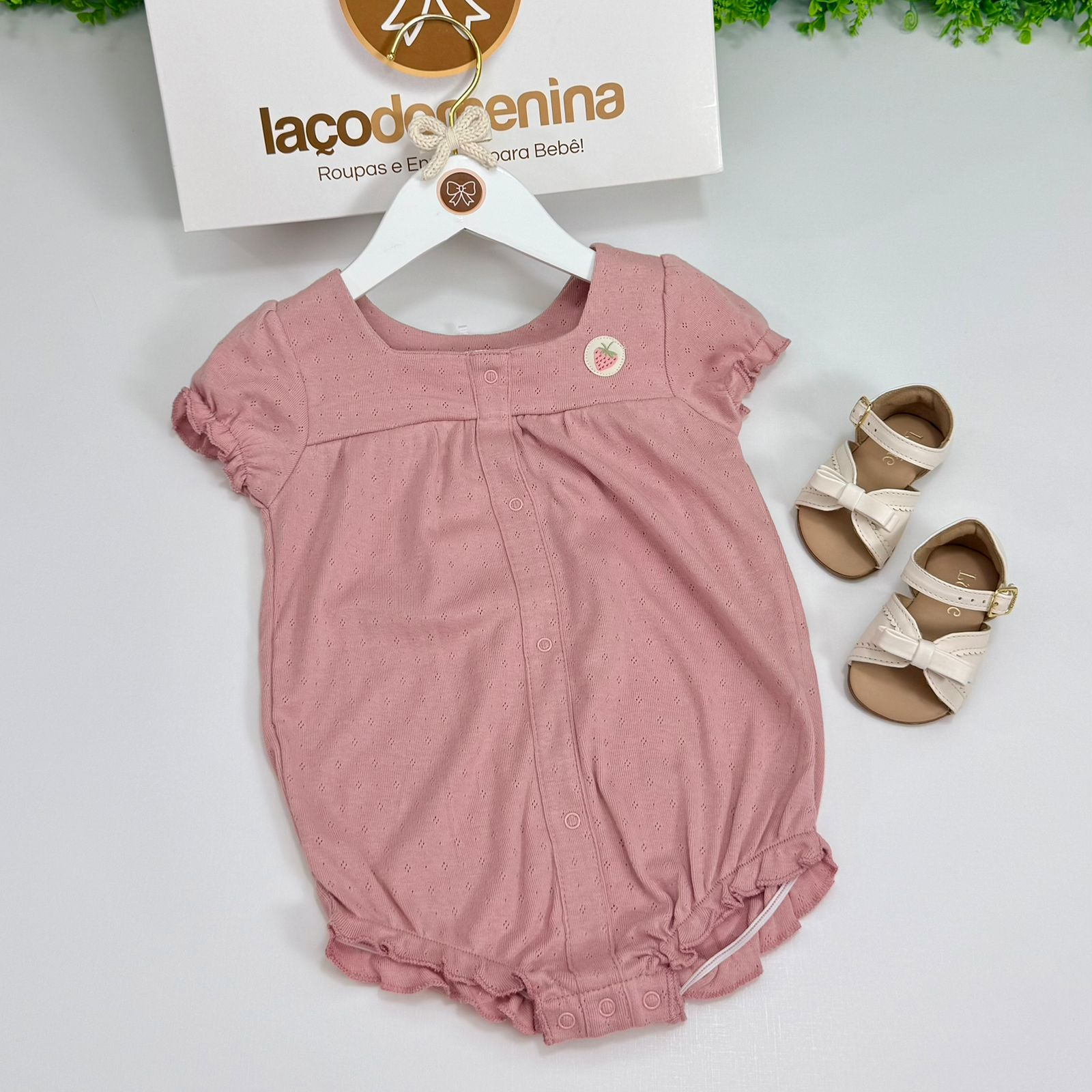 Body em tom rosé com delicado bordado de moranguinho, perfeito para deixar sua bebê ainda mais linda e confortável. Possui modelagem soltinha, botões frontais que facilitam na hora de vestir e acabamento com elástico suave nas perninhas, garantindo praticidade no dia a dia.