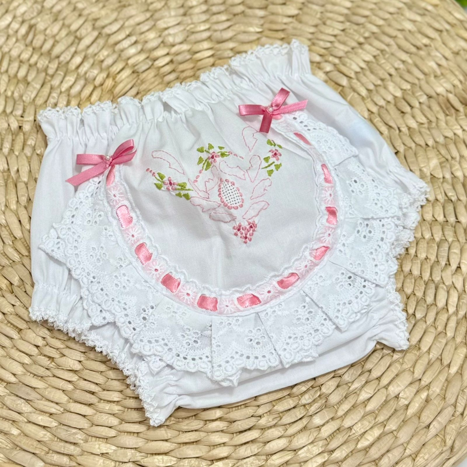 Calcinha Bico de Cambraia Bordado Rosa e Verde