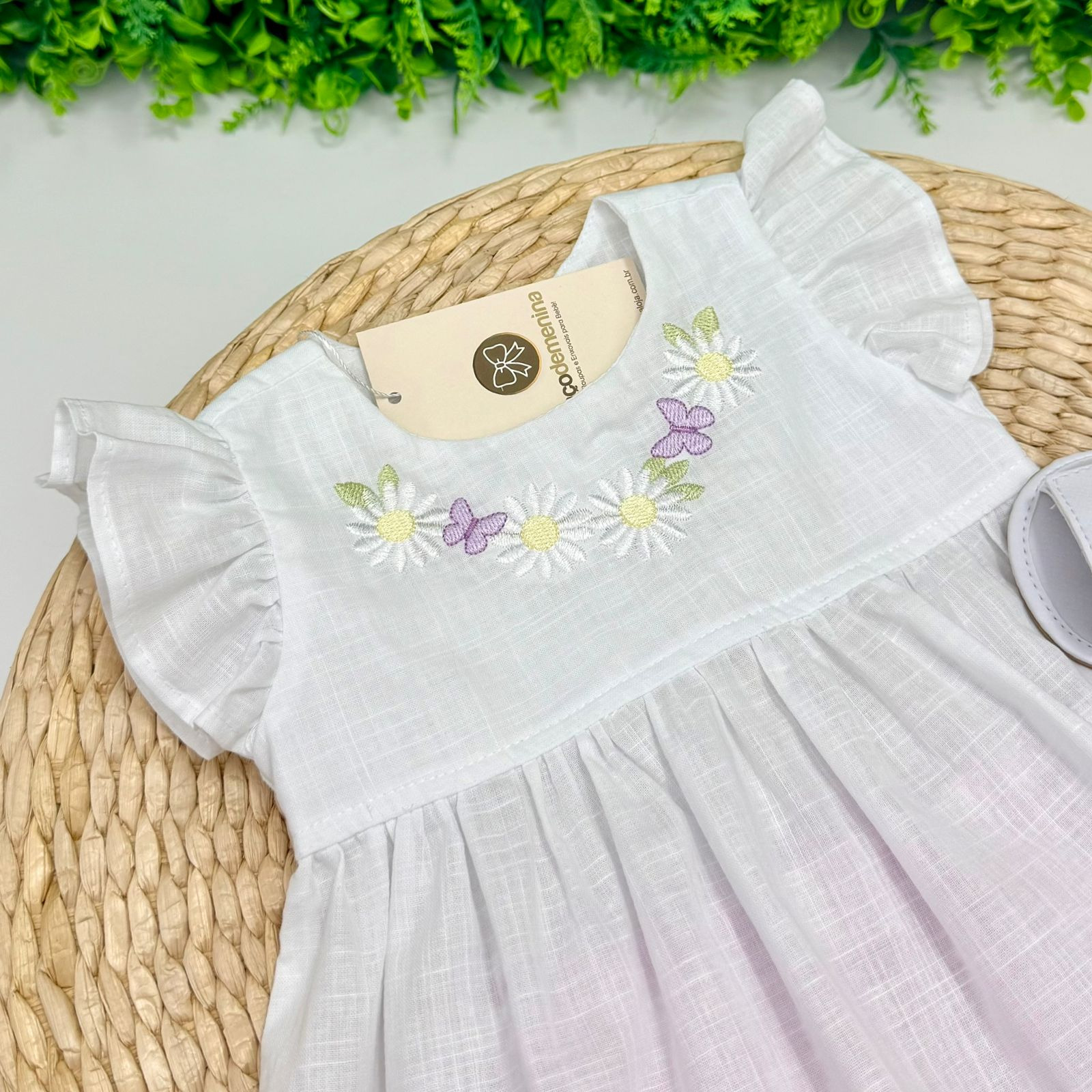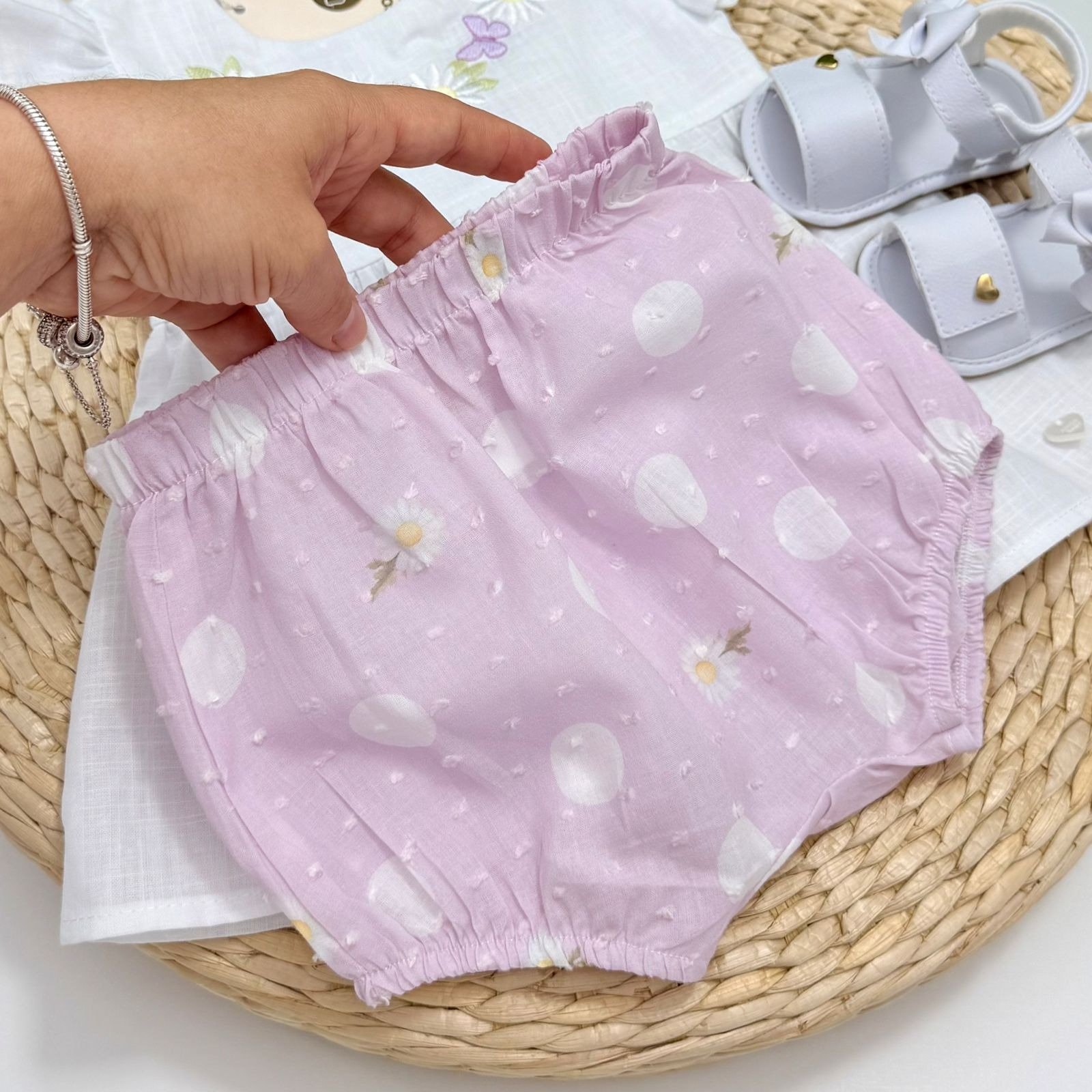 Conjunto feminino Anjos Baby desenvolvido para garantir charme e conforto no dia a dia das pequenas. A batinha apresenta bordado delicado no busto com flores e borboletas, trazendo um toque lúdico e elegante, além de manguinhas curtas que oferecem frescor e liberdade de movimento. Acompanha shortinho super confortável, com estampa de margaridas em tons suaves, criando uma combinação harmoniosa e cheia de encanto. Uma opção perfeita para momentos especiais ou para deixar o cotidiano ainda mais fofo.