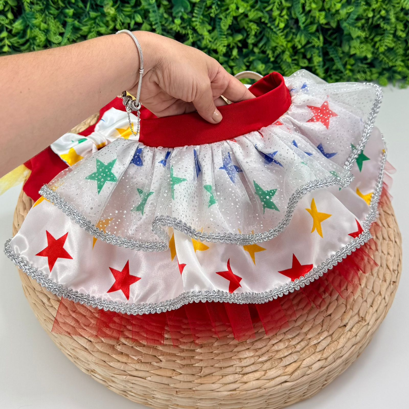 Cheia de cor, alegria e diversão! A fantasia palhacinha infantil é composta por body confortável e saia rodada em camadas de cetim e tule, decorada com estrelas coloridas que dão todo o charme carnavalesco. O laço frontal completa o visual alegre, perfeito para brincar, dançar e curtir o Carnaval com liberdade e estilo.