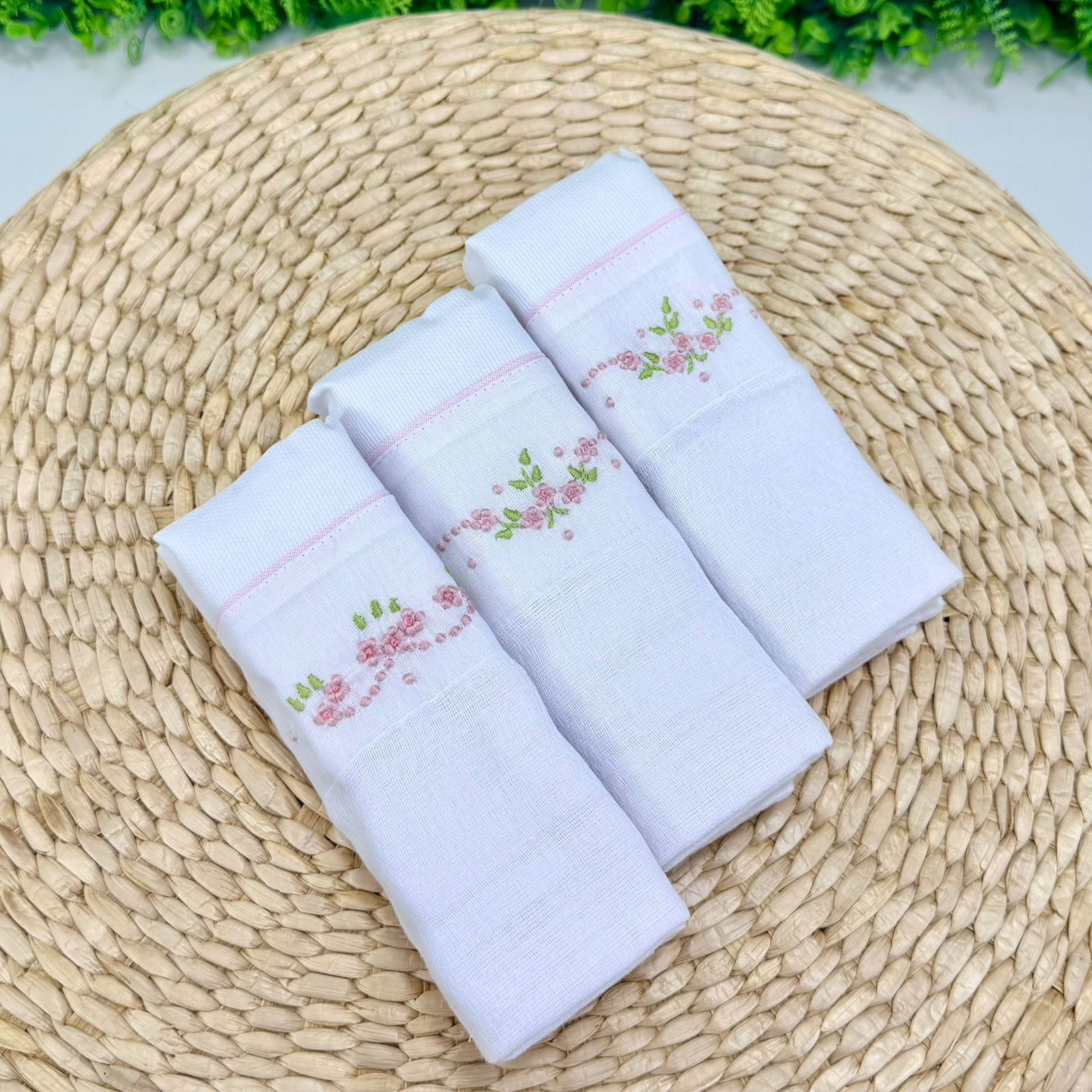 Kit com Fralda de Ombro Bordado Manual Floral Rosa