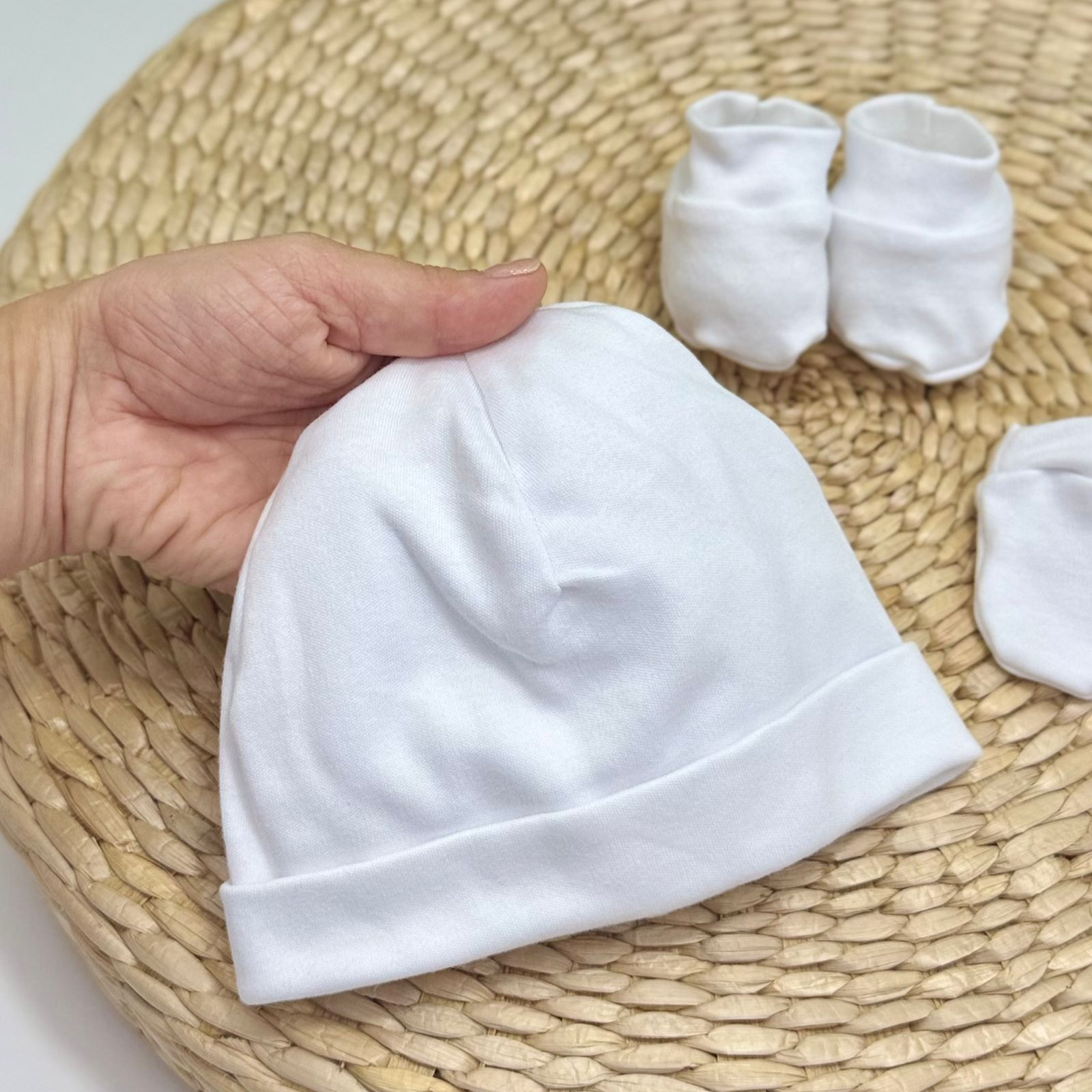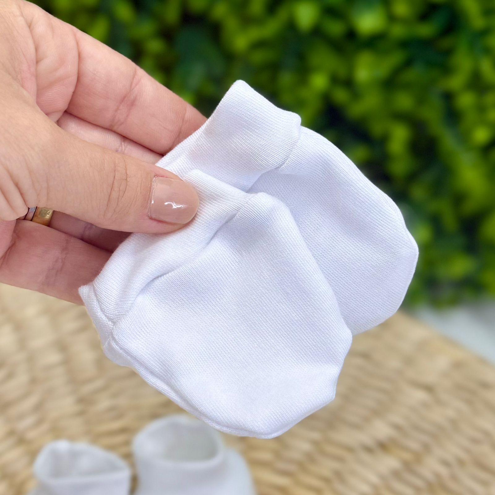 - Kit newborn ideal para os primeiros dias do bebê, composto por touca, par de luvas e par de sapatinhos, desenvolvidos para oferecer conforto, proteção e delicadeza. Confeccionado em tecido macio e respirável, é perfeito para a pele sensível do recém-nascido, ajudando a manter a temperatura corporal e protegendo contra o frio. É uma ótima opção para o enxoval, maternidade ou para presentear.