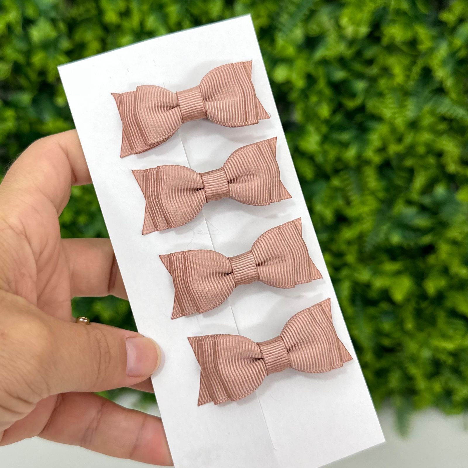 Lacinhos feitas em laço chanel de tecido gorgurão, com bico de pato forrado no mesmo tecido