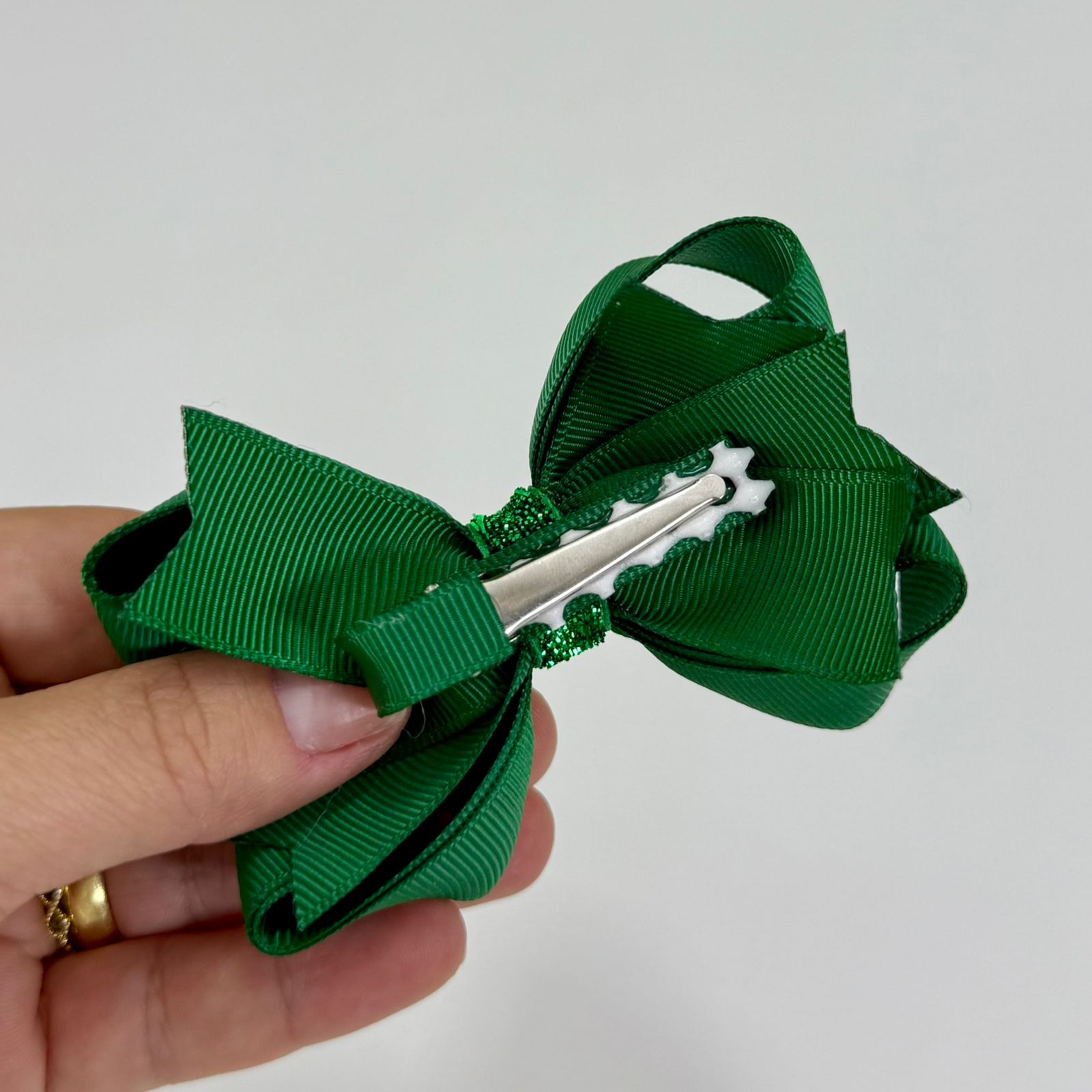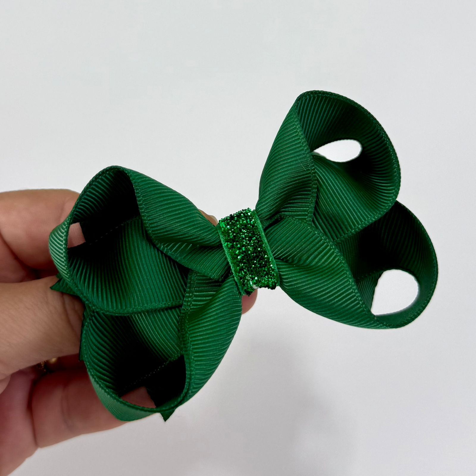 Laço estilo boutique feito com fita de gorgorão na cor verde , trazendo elegância e charme para qualquer ocasião. O destaque fica por conta do acabamento central em glitter verde, que adiciona um toque de brilho e sofisticação.
