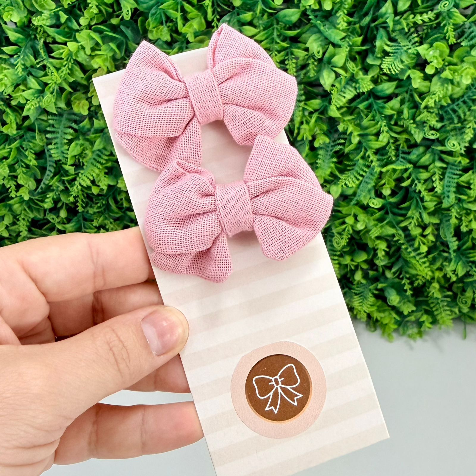 • Par de laços, com textura suave e acabamento delicado. Clássicos, leves e perfeitos para complementar looks com charme e elegância.
