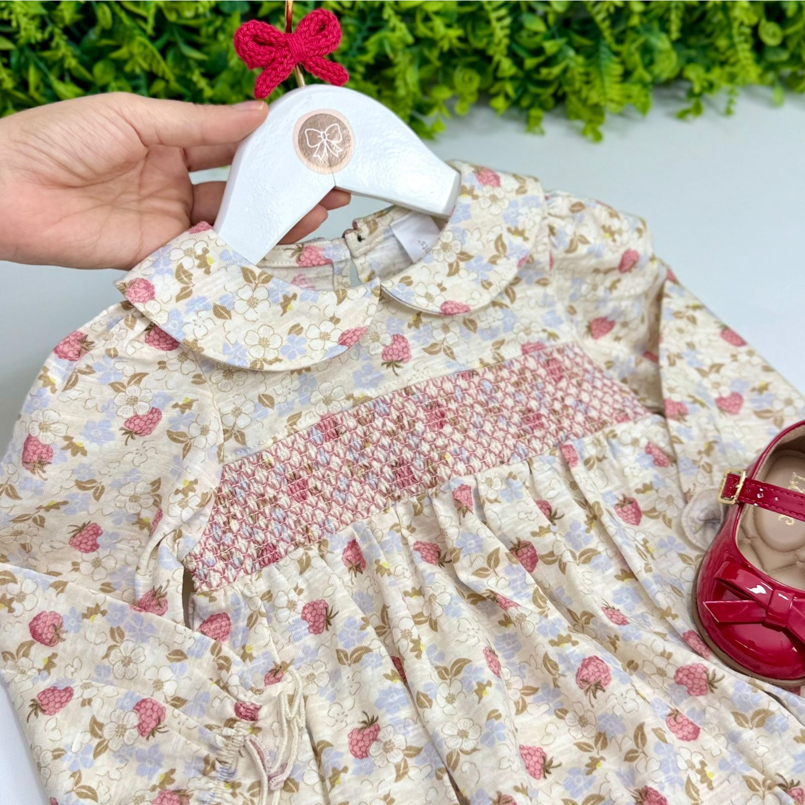 As mangas longas com leve franzido completam a peça, garantindo ainda mais delicadeza e conforto para a sua pequena. Ideal para diversas ocasiões, unindo praticidade e estilo em um visual atemporal.