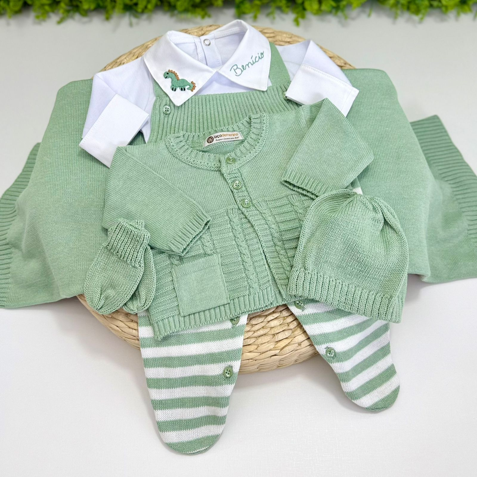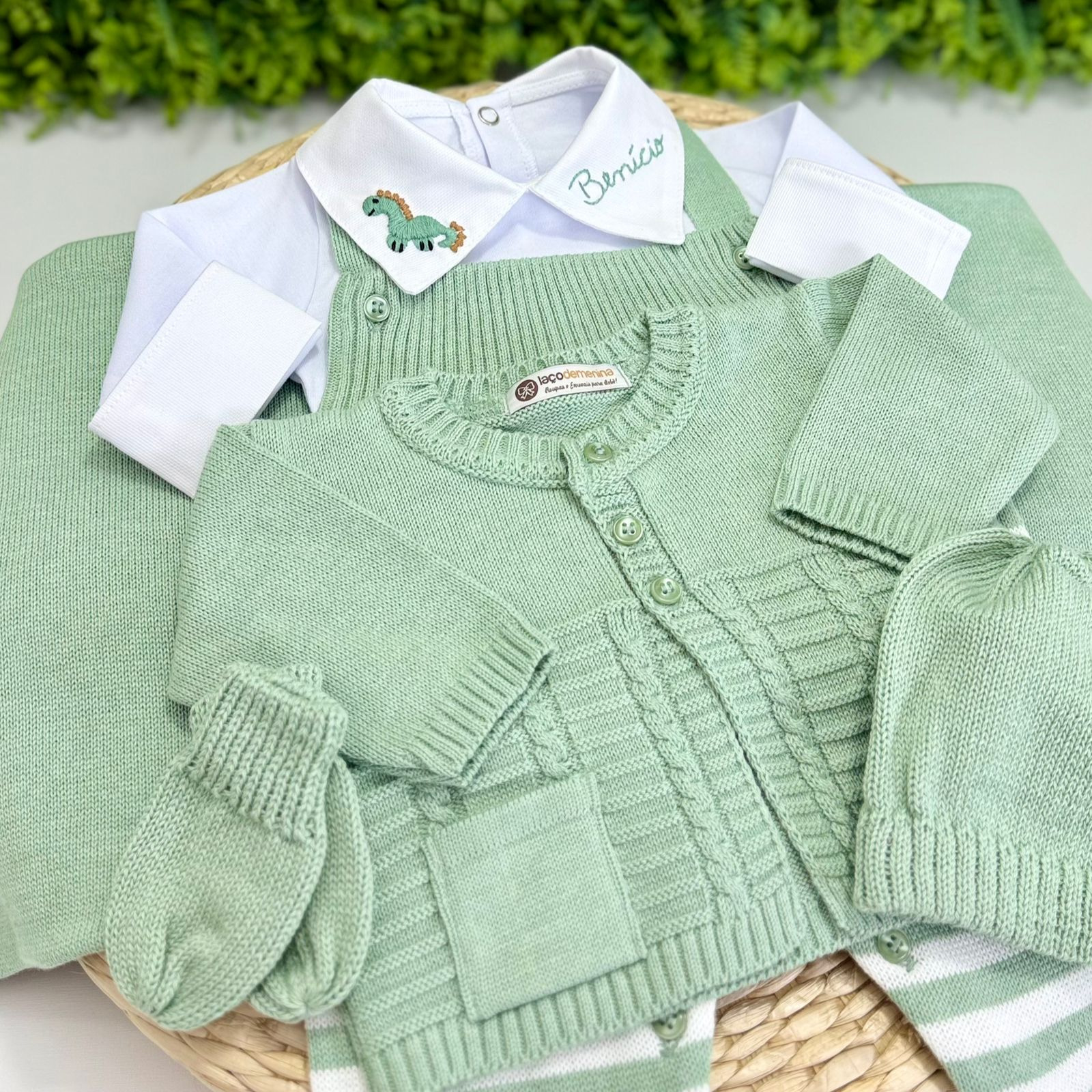 Conjunto de Saída Maternidade Masculina – Tricô Verde e Branco