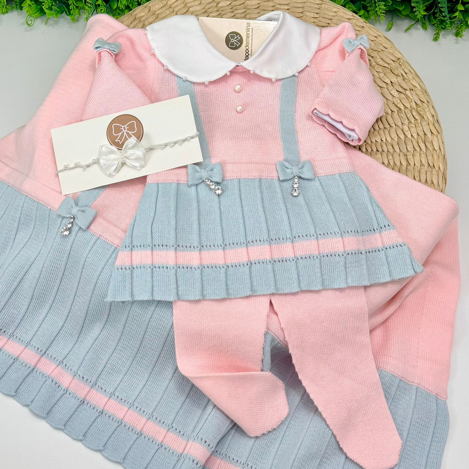 Delicada, elegante e pensada em cada detalhe, esta saída maternidade é a escolha ideal para tornar os primeiros momentos do bebê ainda mais especiais. Confeccionada em tricot macio, o conjunto traz uma combinação suave e clássica de rosa com azul, transmitindo charme e sofisticação.