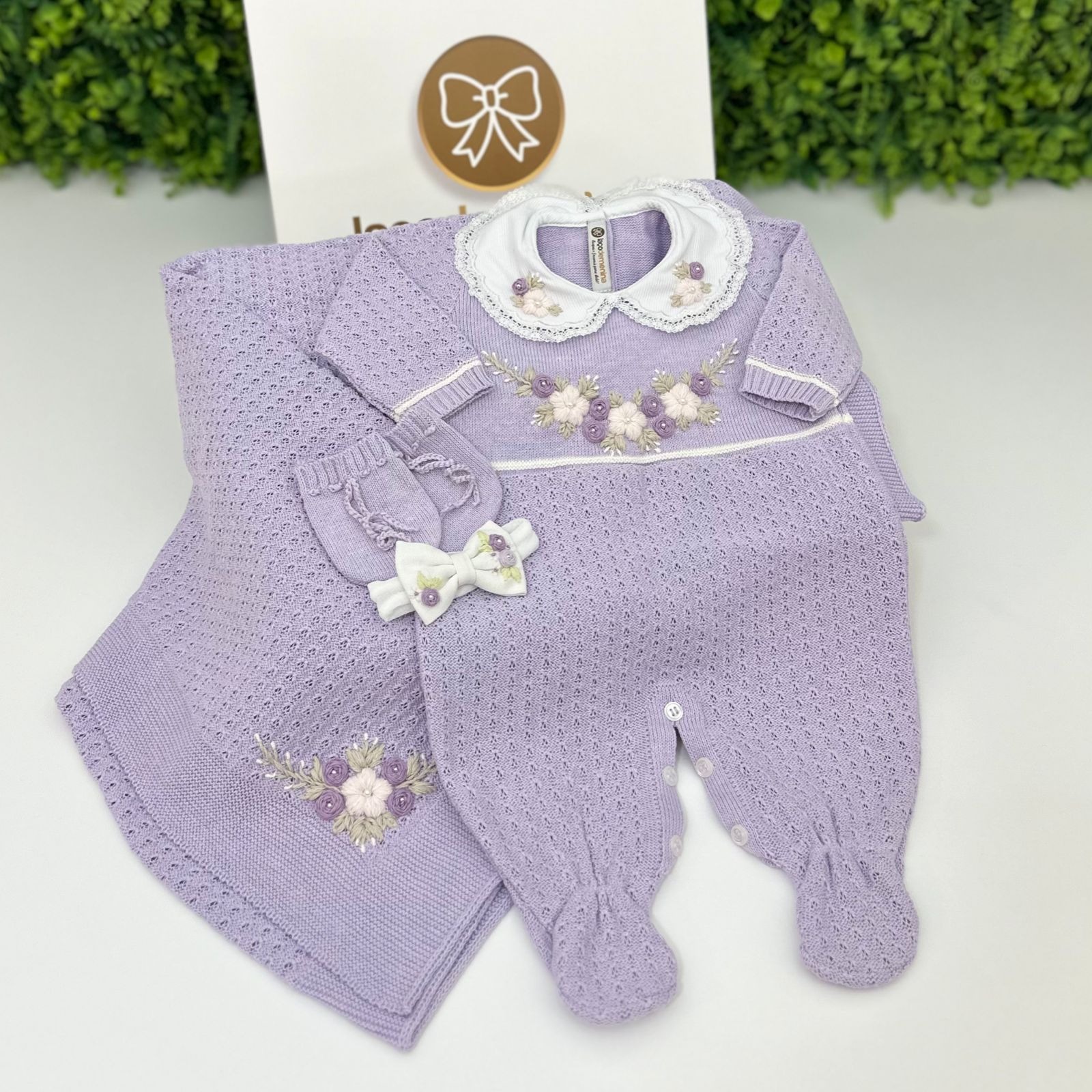 Encante-se com esta linda saída maternidade em tricô, perfeita para o primeiro passeio do bebê. Confeccionada em tricô macio e delicado, ela oferece conforto, aconchego e muito charme para os primeiros dias de vida.