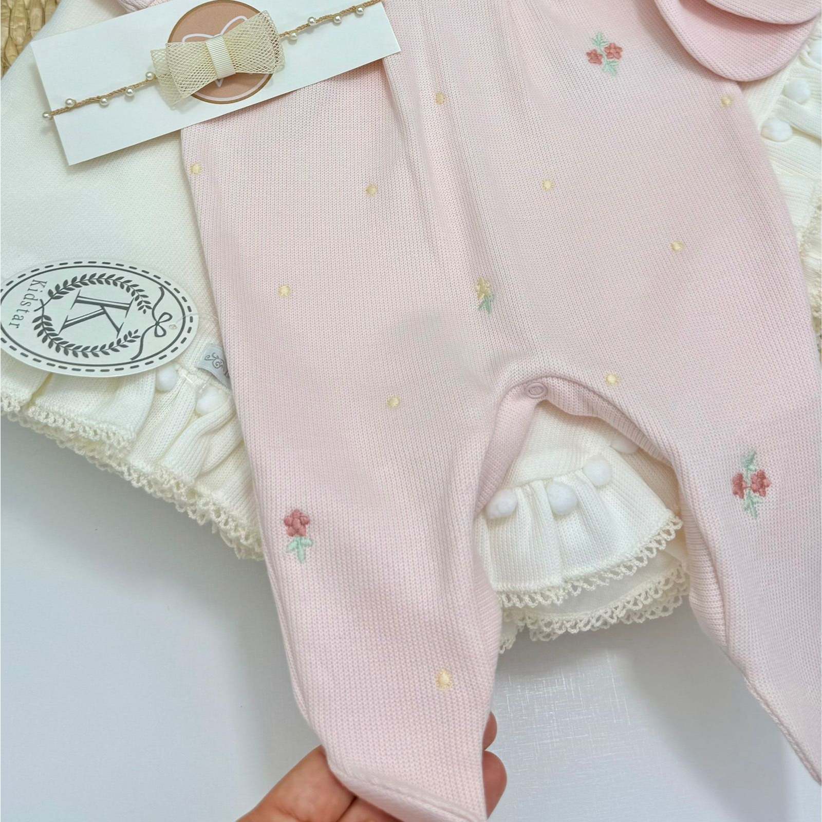 A Saída Maternidade Menina Kidstar® é a escolha perfeita para tornar os primeiros momentos da sua bebê ainda mais especiais. Confeccionada em malha macia e confortável, ela vem em um tom rosa suave, com delicados bordados florais que trazem um charme clássico e atemporal.