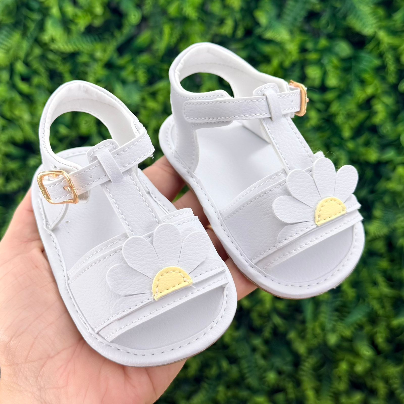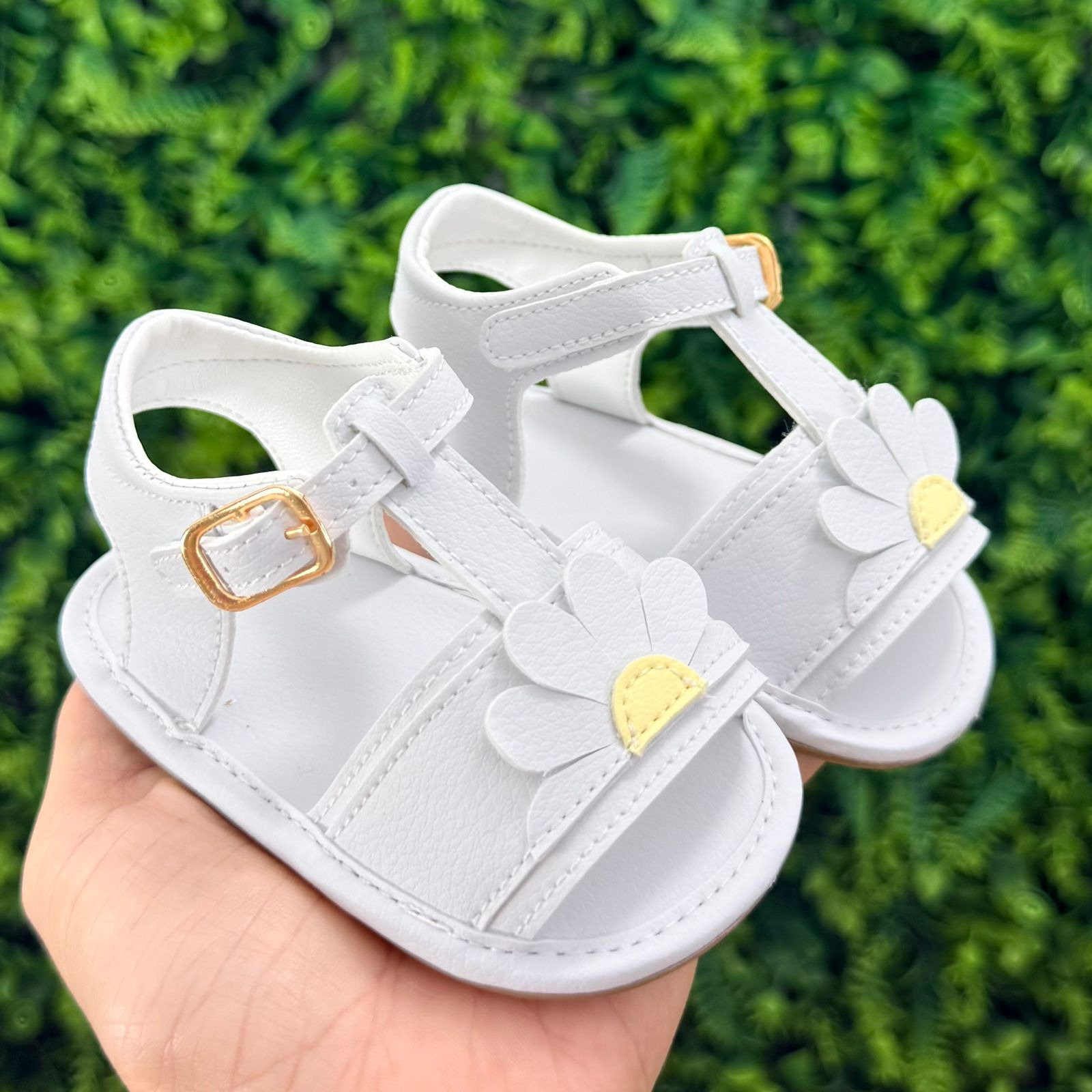 Nossa sandália infantil é super delicada, com detalhe de margarida encantadora e solado antiderrapante, garantindo mais estabilidade e tranquilidade para as pequenas explorarem o mundo com estilo.