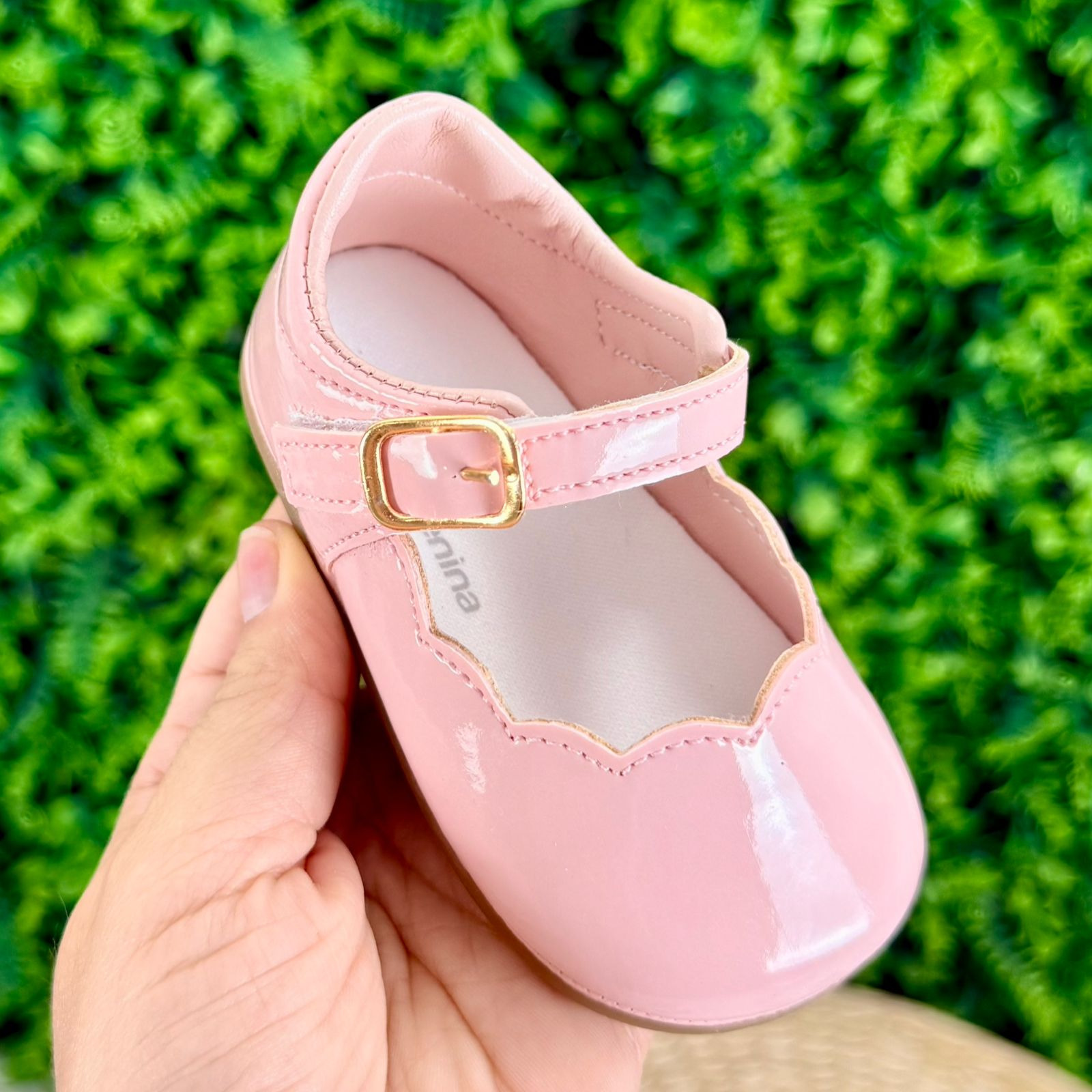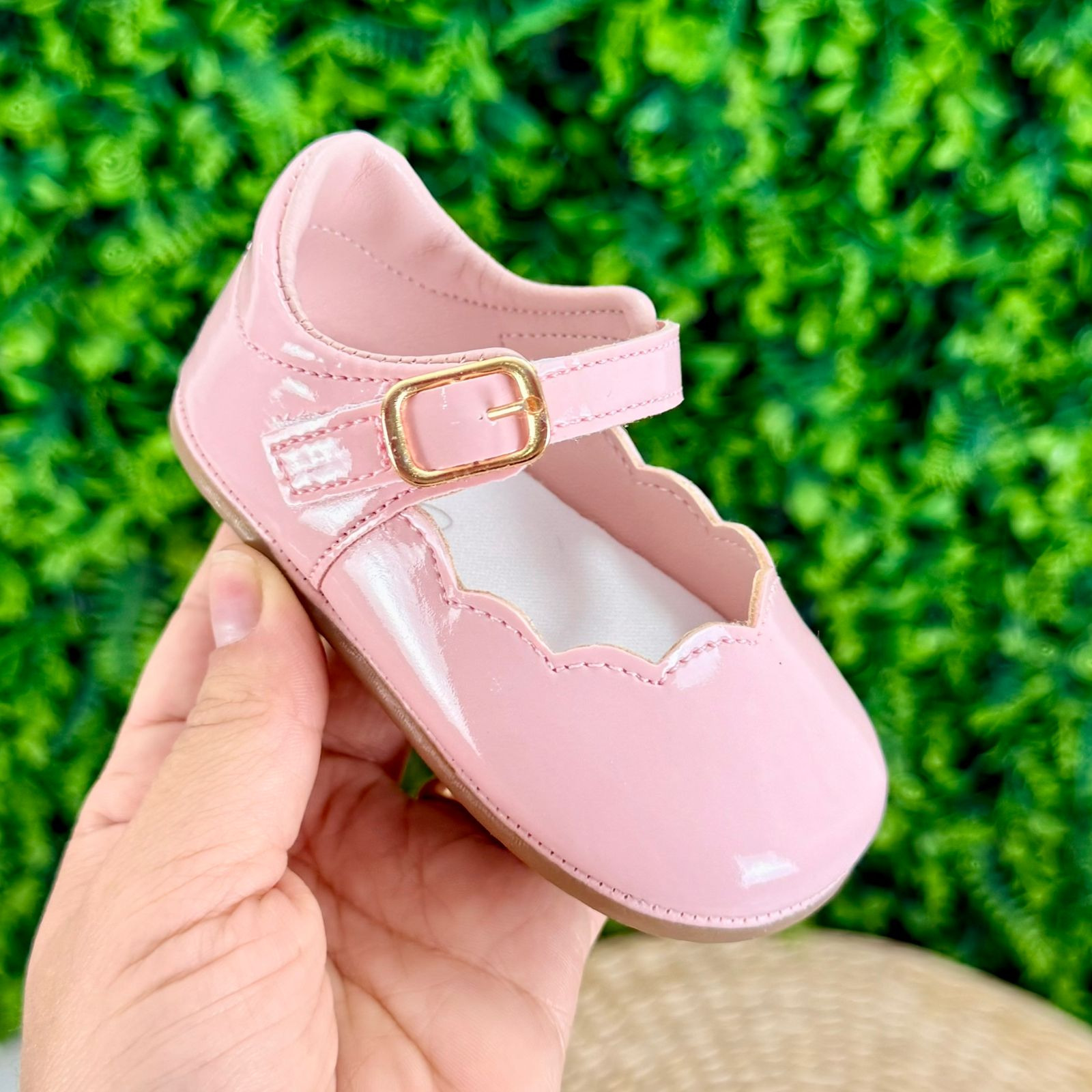 Encante nos primeiros passos com este sapatinho infantil em verniz rosa, delicado e cheio de charme. Confeccionado em material de alta qualidade, possui acabamento brilhante que traz elegância ao visual, perfeito para ocasiões especiais ou para deixar o dia a dia ainda mais fofo.