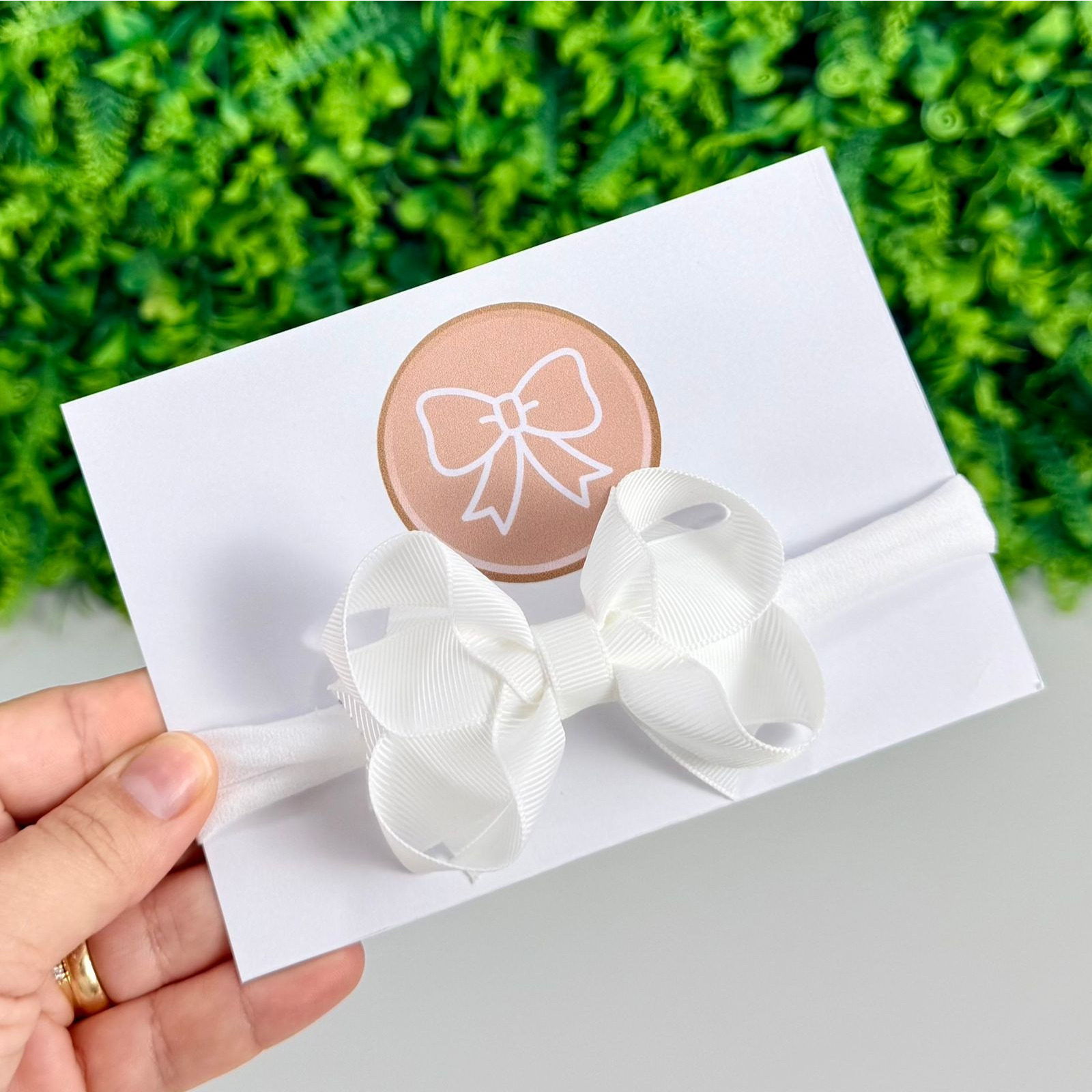 • Tiara com laço modelo boutique em meia de seda na cor branca.