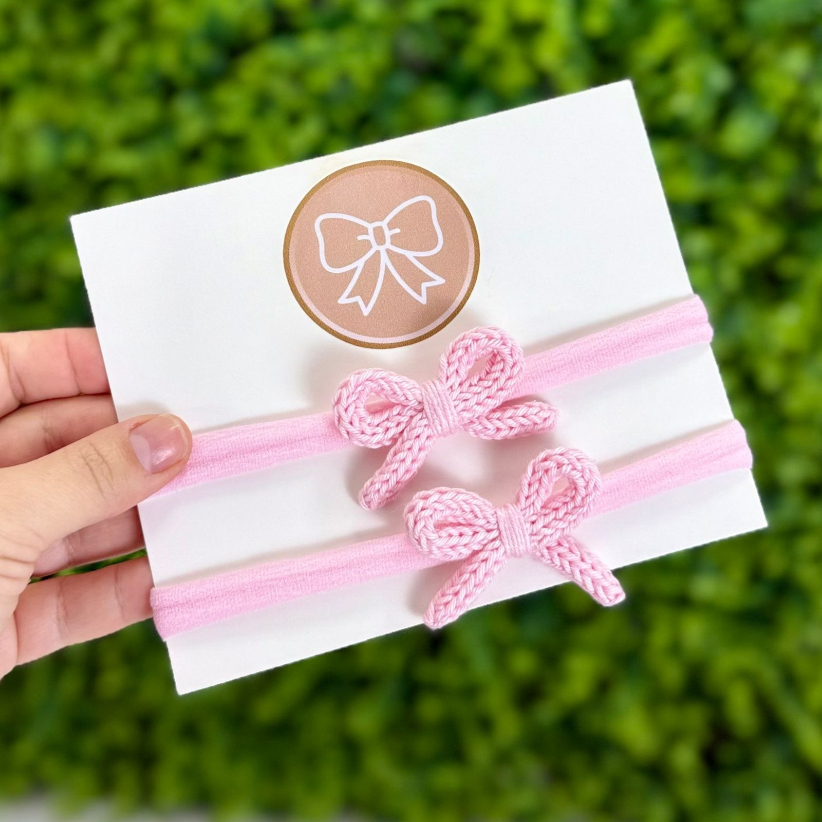 - Um toque de amor e suavidade: tiara em meia macia com laço em trico delicadamente aplicado.