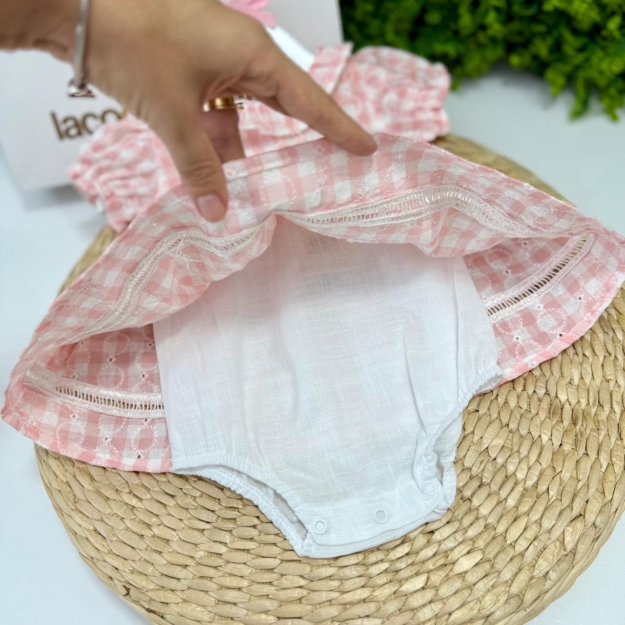 Acompanha um body interno branco, feito em 100% algodão, com botõezinhos de pressão no fundo perfeito para manter o conforto durante todo o dia. Ideal para passeios, festinhas e momentos especiais, esse vestidinho é pura doçura!