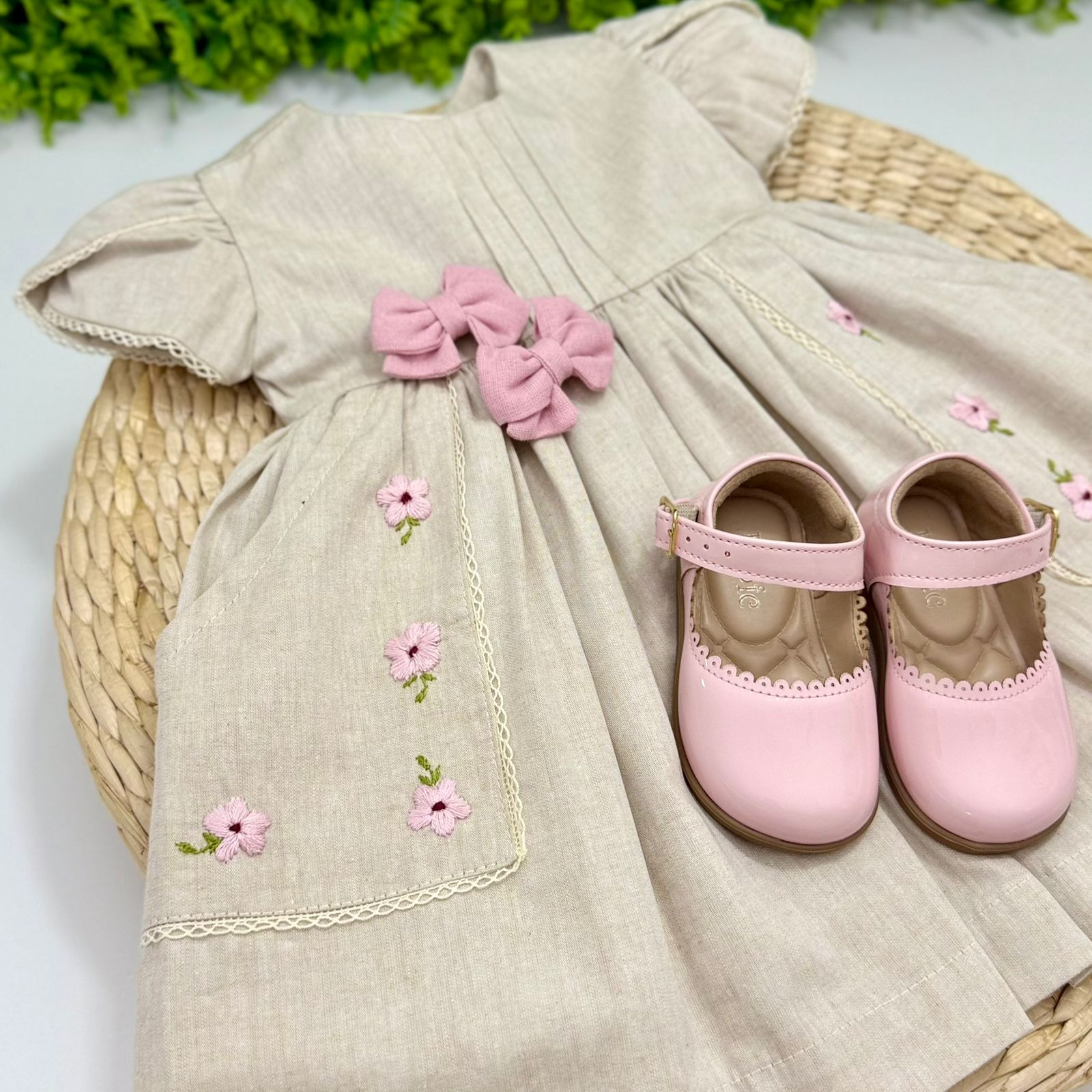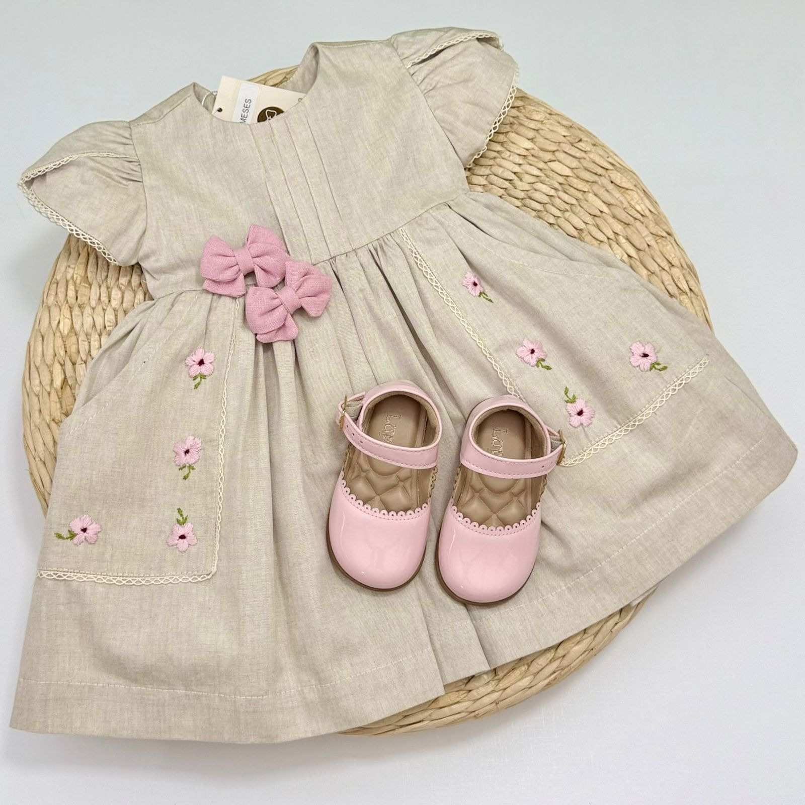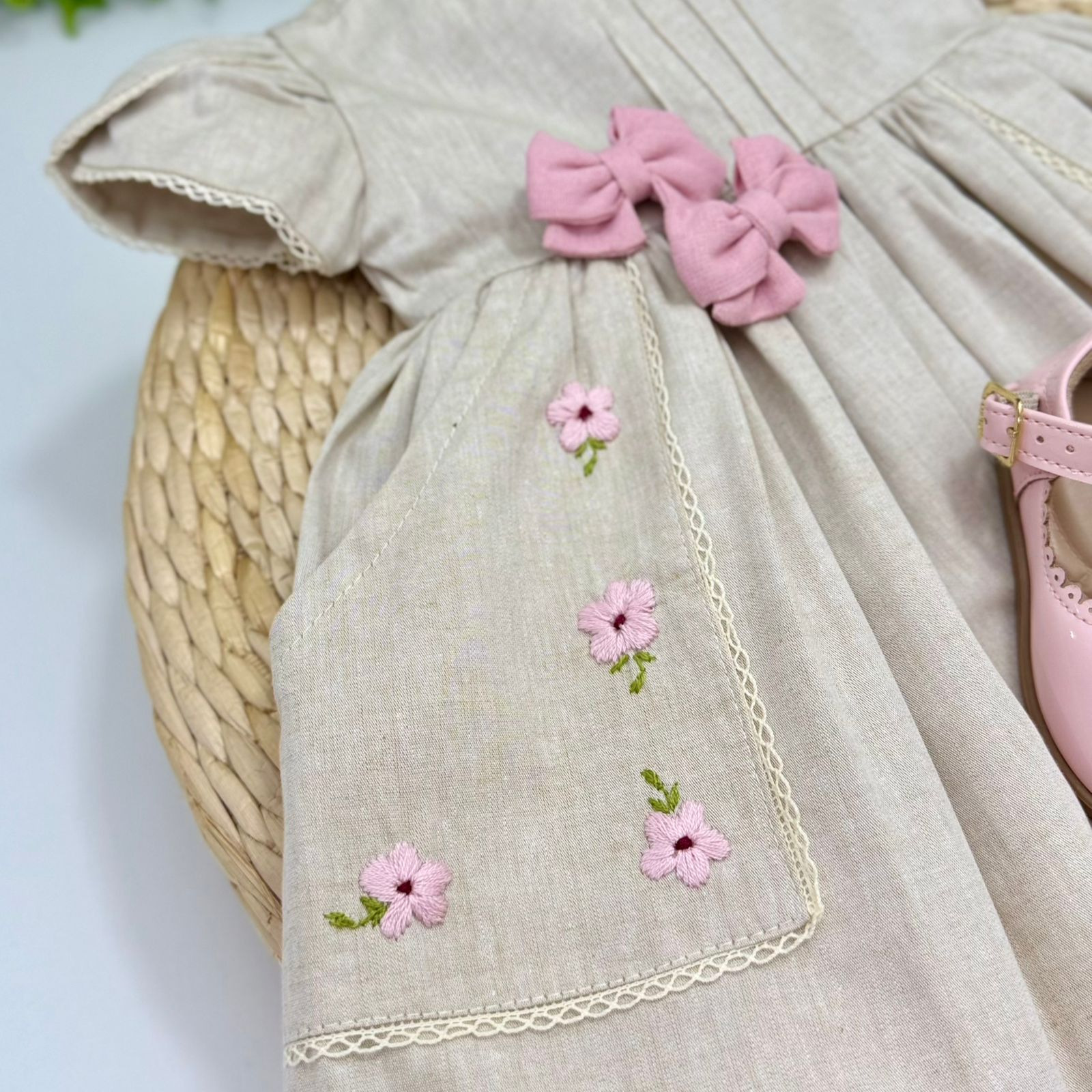 Um vestido cheio de charme para momentos especiais! Confeccionado em tecido leve e confortável, ele traz bordados florais delicados, acabamento em renda e um tom neutro que combina com tudo.