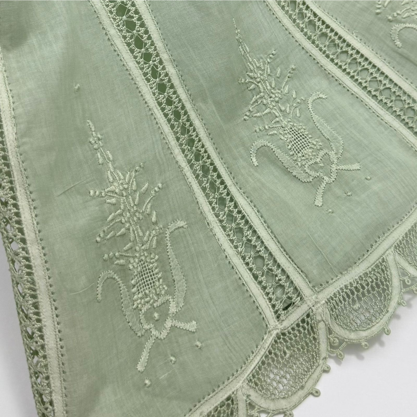 Este delicado vestido verde apresenta um design clássico e sofisticado, confeccionado em tecido leve e refinado. O modelo possui nesgas finas ao longo da saia, criando um caimento suave e vaporoso. Detalhes bordados em padrão floral se distribuem pela peça, adicionando um toque artesanal encantador.