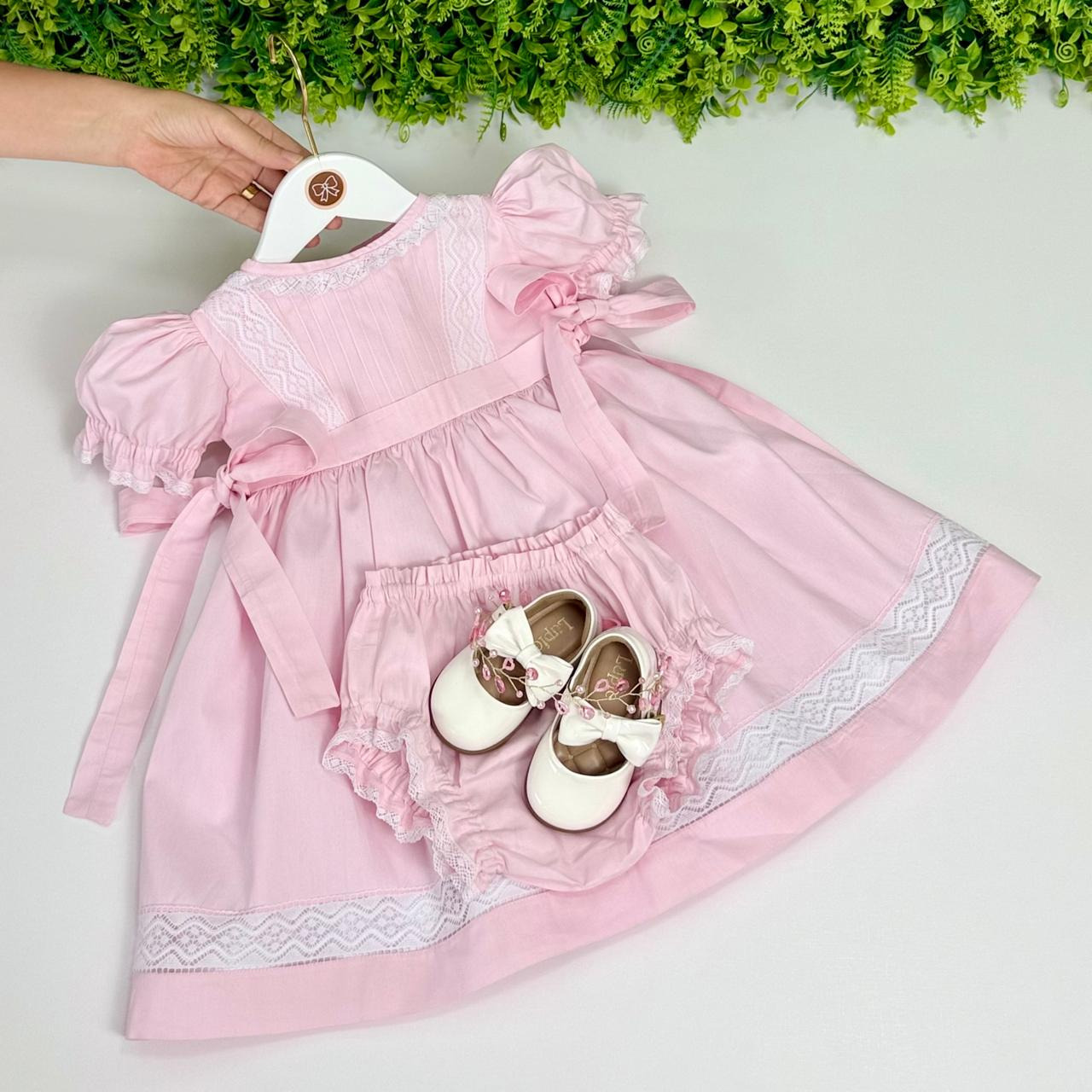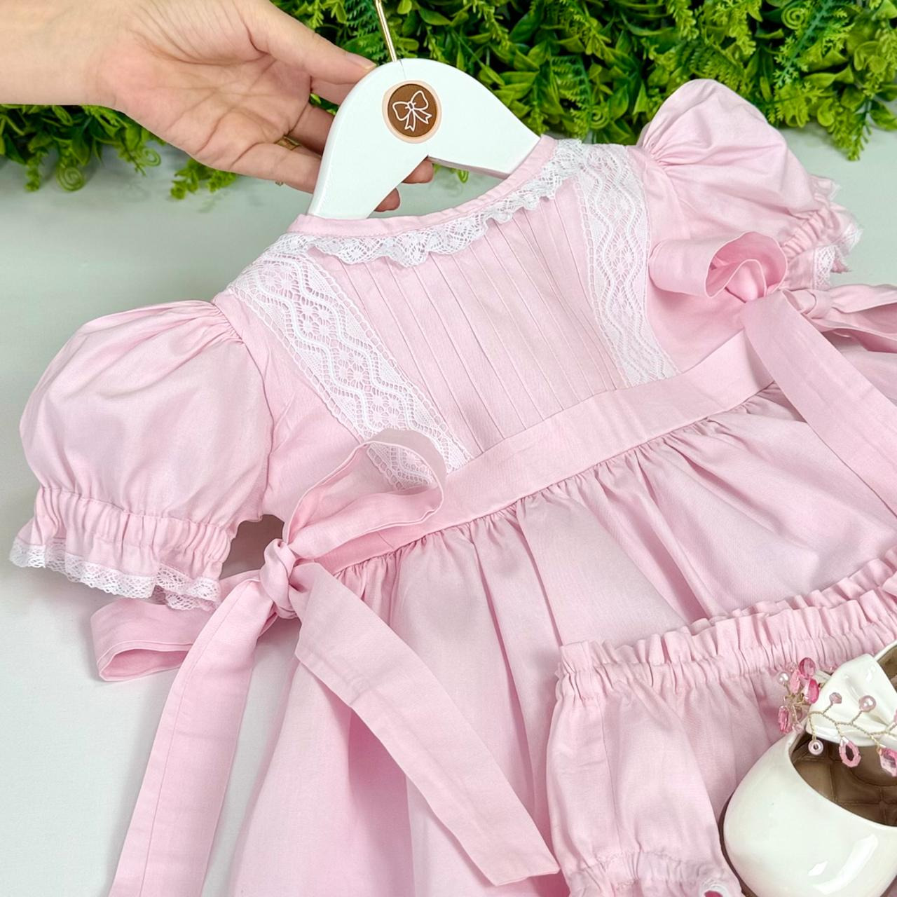 Vestido infantil delicado e encantador, confeccionado em tecido de algodão, perfeito para ocasiões especiais ou para deixar o dia a dia ainda mais lindo. O modelo possui mangas curtas bufantes e detalhes em bico de renda paraibana, que trazem um toque artesanal e sofisticado à peça.